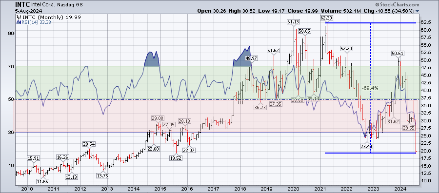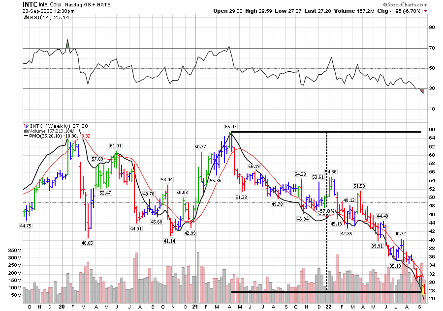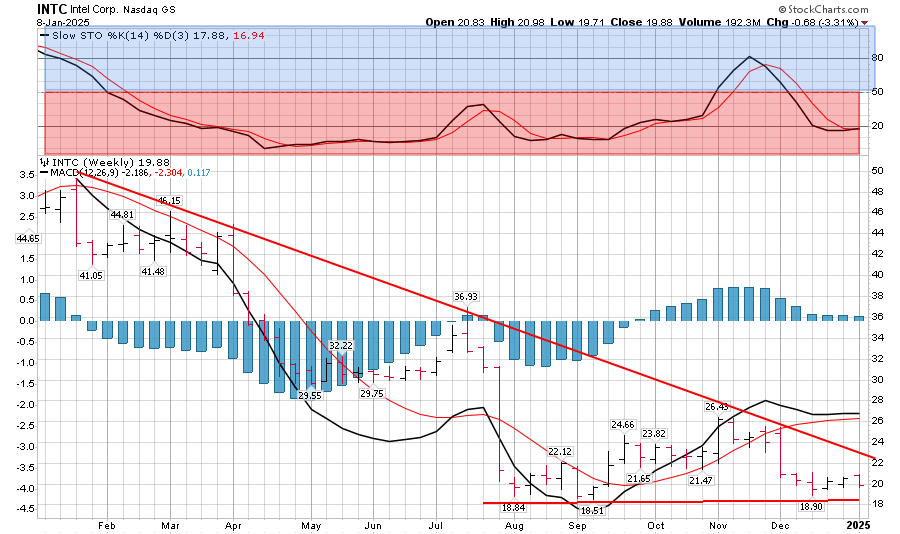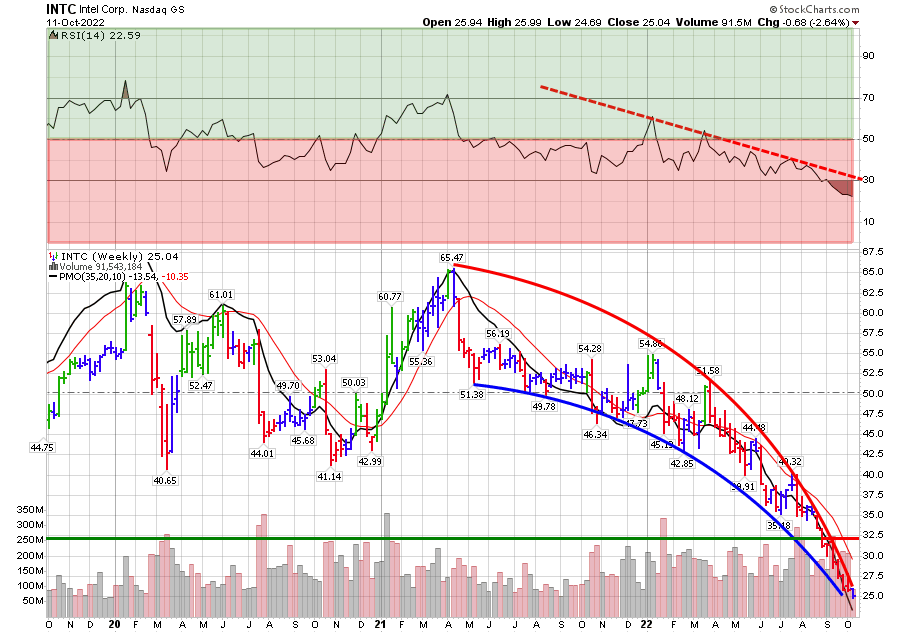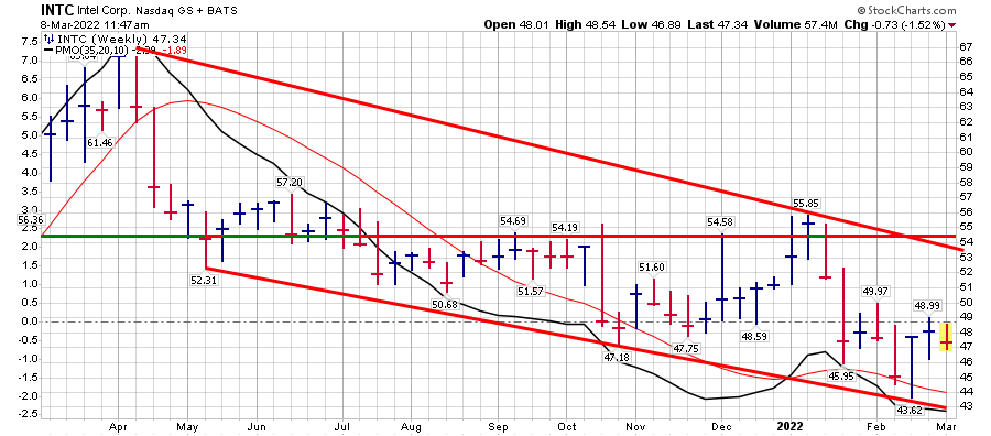 המגמה הראשית שבועית דובית. ההגרף בוחן בשנית את רמת התמיכה 47 דולר. אם רמה זו תיפרץ הגרף יכוון לשער מטרה של 40 דולר. רק מעל שער 58 דולר עשויה המגמה להפוך שורית.