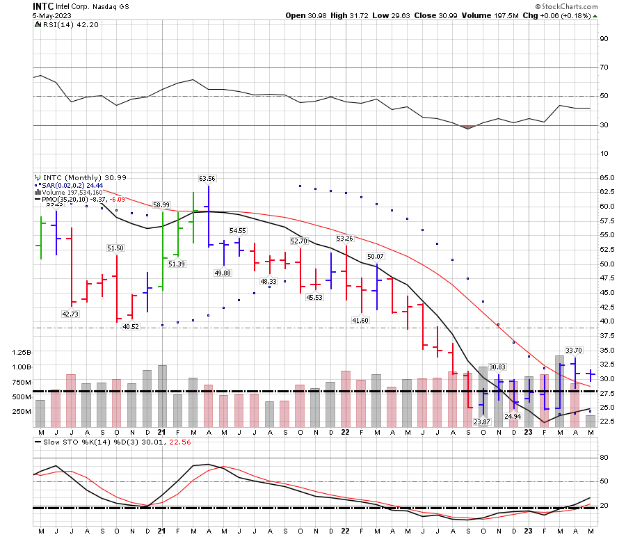 דישדוש ברמת המחיר של 30 דולר משמרת את המגמה הדובית. מתנד ה-RSI הנע בתוך הגזרה הנמוכה של השורט מאשרר את הדוביות. במבט בגרף חודשי יש יציאה של תנועה במתנד הסטוקסטי מעל רמת ה-20% ואולי אלה ניצני צמיחה. בניתוח הארוך נראה שהמעבר לשוריות רק מעל שער של 50 דולר, וזה גם השער אליו מכוונת כמחיר היעד השאיפה לתנועת הגרף.