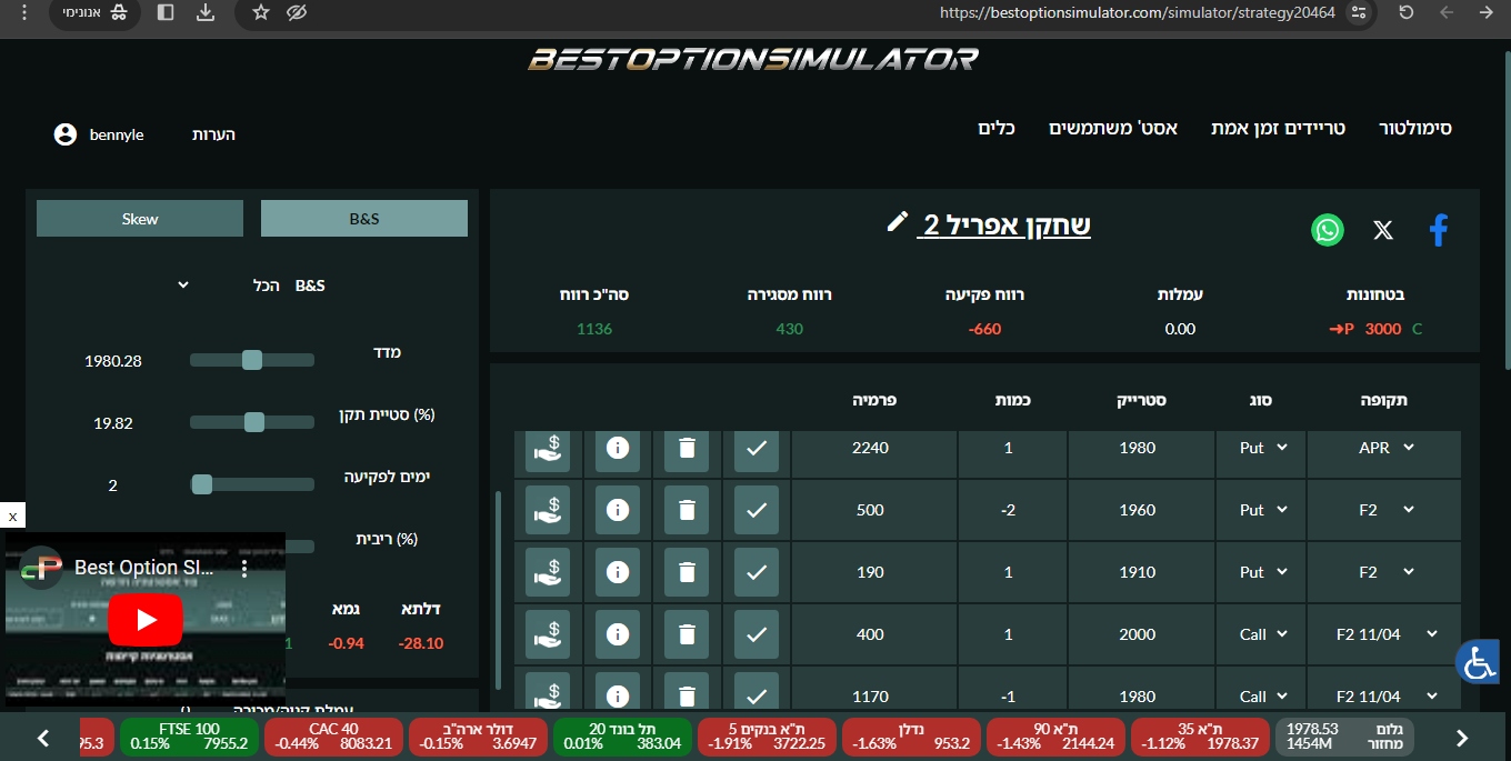 • השימוש ב-BestOptionSimulator.com (להלן: "B.O.S") מותנה בהסכמה מלאה וחד משמעית של המשתמש לכל האמור להלן: