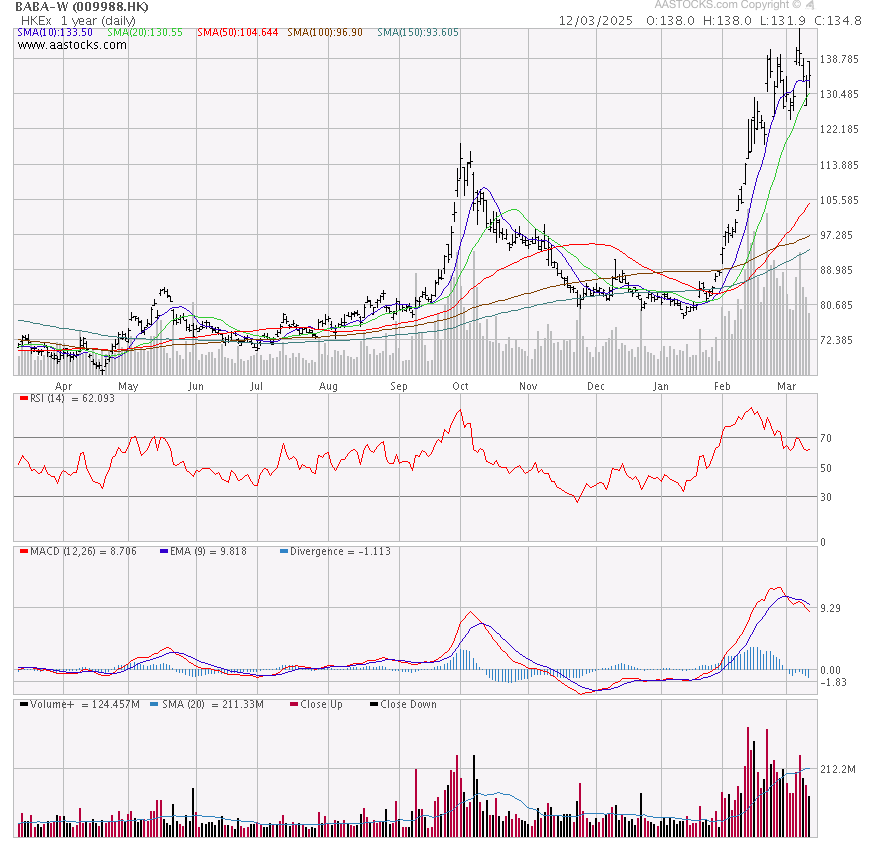 להלן גרף חברת עליבאבא הנסחרת בדואליות בהונג קונג