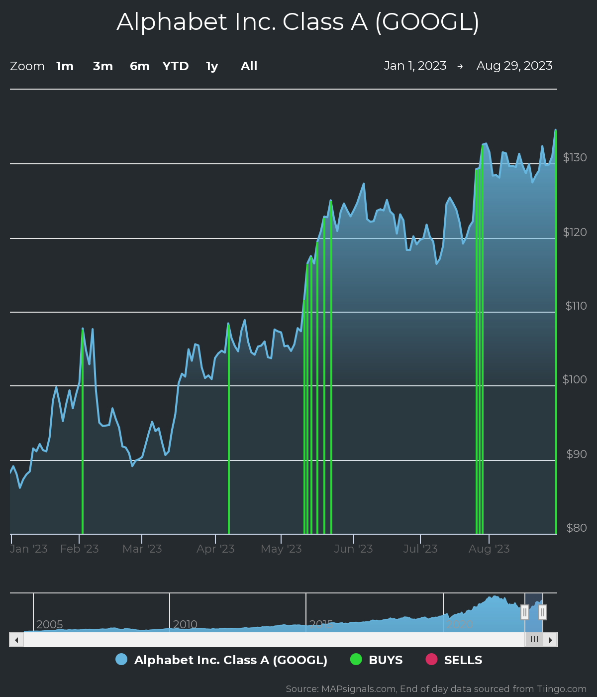 אלפבית הייתה מניה עם הדירוג הגבוה ביותר ב-MAPsignals. זה אומר שלמניה היה לחץ רכישה וצמיחה פונדומנטלית.