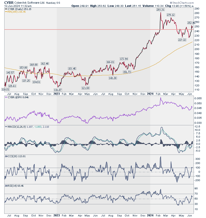 - CYBR: נתמכה תמיכה אופקית ב - 223 דולר. חוזרת לעלות. אפשר להצטרף לעליה הזו עם הגנה מתחת ל - 238.